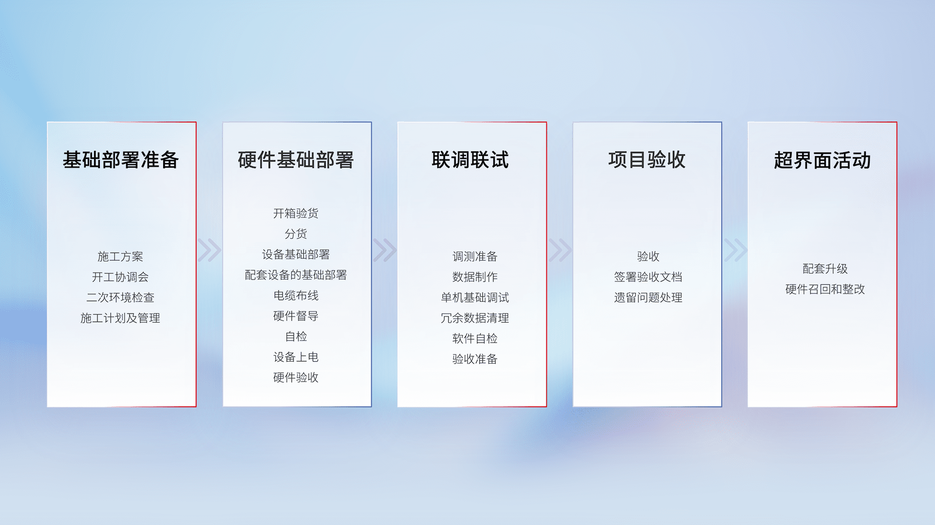 从基础部署准备、、、、硬件基础部署、、联调联试、、项目验收、、越界面活动的全过程可追溯,,,,保证施工质量和进度。。